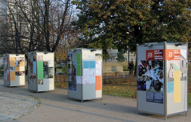 Przygotowana przez Forum Dialogu wystawa towarzyszącą otwarciu Polin-Muzeum Historii Żydów Polskich. Wystawa poświęcona była przemianom, jakie w ciągu ostatnich 25 lat dokonały się na polu dialogu polsko-żydowskiego. Pokazała ogrom inicjatyw powstałych w całej Polsce. Opowiadała o dorobku młodzieży uczestniczącej w programach edukacyjnych, które otwierają oczy na to, co zapomniane. Ukazywała historie Liderów Dialogu, którzy zajmują się ochroną dziedzictwa żydowskiego w małych miejscowościach. Poruszała też temat spotkań Żydów z Diaspory, którzy odwiedzają Polskę i konfrontują swoje wyobrażenia na jej temat z rzeczywistością. Wystawę "25 lat w Dialogu" oglądać można było przez miesiąc, od 24 października 2014, przy Alei Ireny Sendlerowej w Warszawie.
